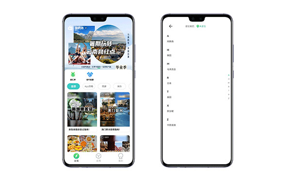 内容涵盖攻略、旅游推荐、娱乐项目、热门景点等,通过切换左上角的目的地可查看不同国家地区资讯。