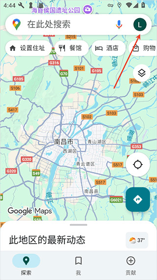 1、在本站下载安装好谷歌地图后,进入到主页面选择右上角的账号头像。