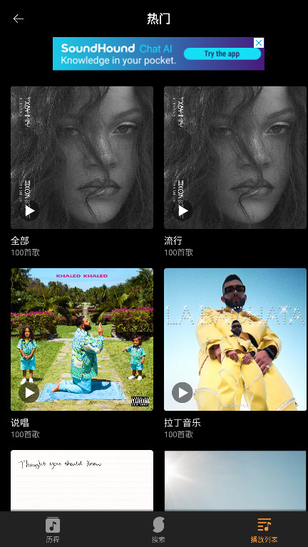 5、在播放列表可以看到有各种类型的音乐,都可以免费听。