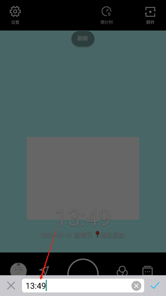 2、在拍摄界面,找到并点击“日期”、“时间”或“地点”选项