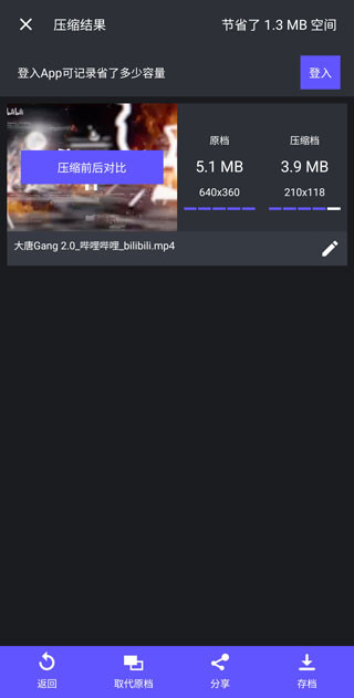 3、嗖的一声就帮你压缩好了,压缩后的画质不存在打折扣的现象,还能帮你节省更多手机空间,让你尽情的自由拍摄视频或者照片。