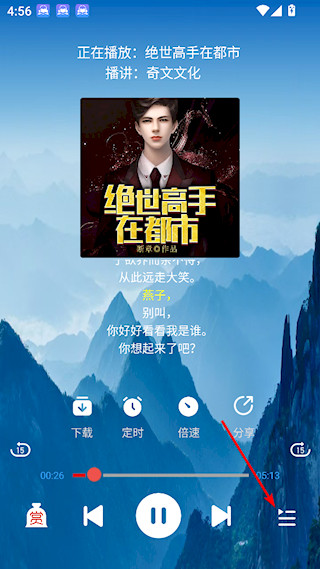3、在弹出的目录里选择想听的章节即可切换。