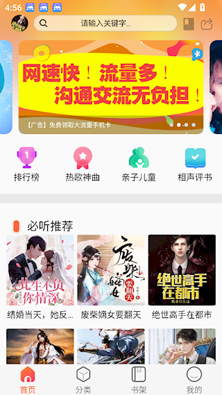 海量的小说、评书、娱乐等内容,涵盖了悬疑、言情、历史等多种类型,满足不同用户的阅读需求。