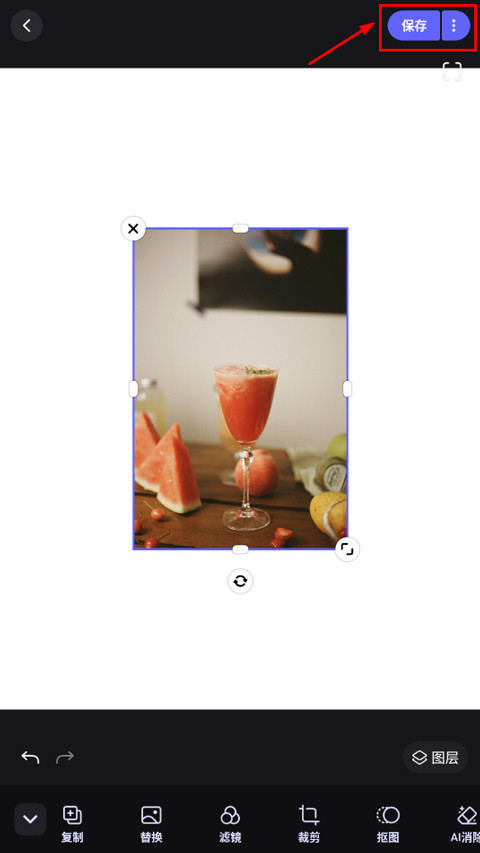 5、应用支持调整图片大小,用户可插入多张图片进行拼图制,制作好后点击右上角”保存“按钮;