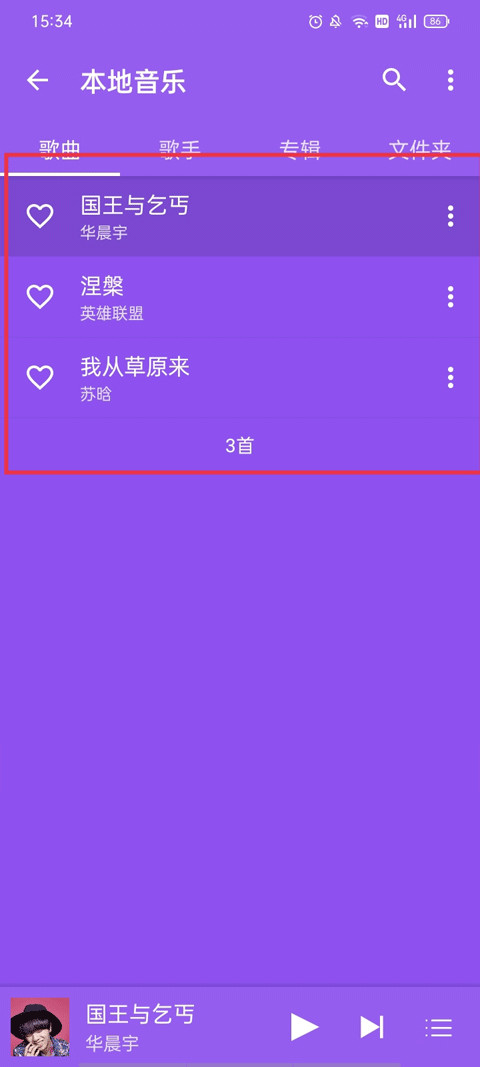 3.能够在短时间内快速扫描出本地音乐,然后点击音乐就可以进行播放了;