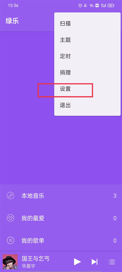 1、在绿乐音乐播放器主界面上,点击右上角的三点按钮选择设置功能键。