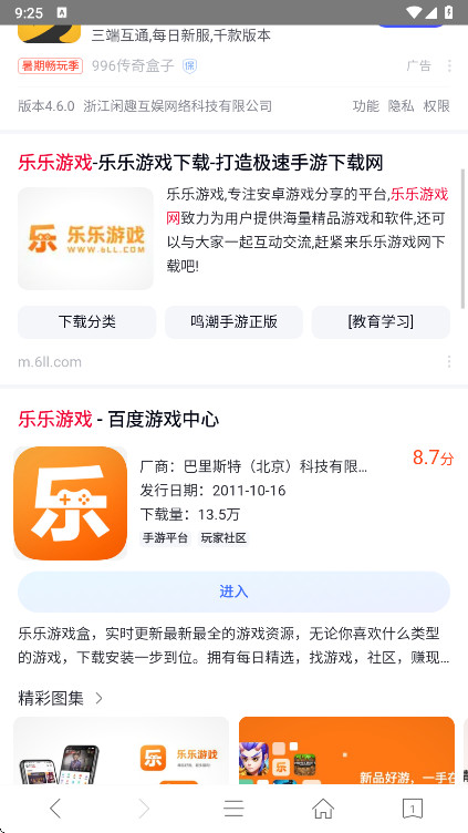 3、以乐乐游戏网为例,搜索乐乐游戏网,可以获取到基础的搜索结果