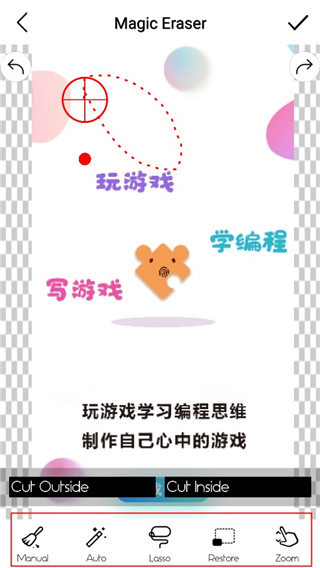 MagicEraser手机版是功能强大好用的图像编辑美化软件。用户通过应用能够完成图片抠图处理的任务,可以对自己的照片进行一键抠图。MagicEraser手机版下载还包括了各种功能供用户使用,比如贴图、背景、合成模板、字体、滤镜等。应用不仅能够去除不需要的元素,还可以进行照片修复,让用户掌握容易的图像处理技巧。
