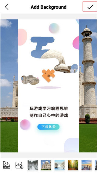 6、然后就是选择自己喜欢的背景并点击右上角“√”即可完成;