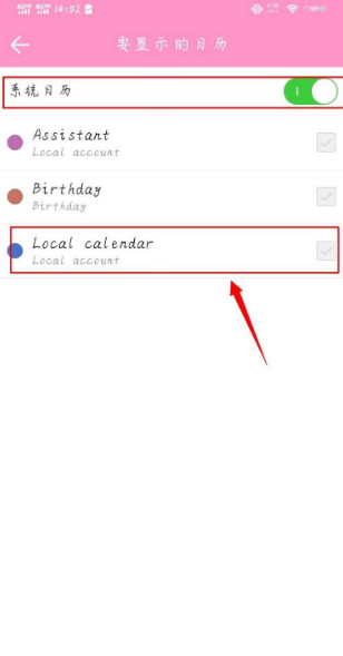 之后,我们我们在【日历设置】页面中点击【要显示的日历】。