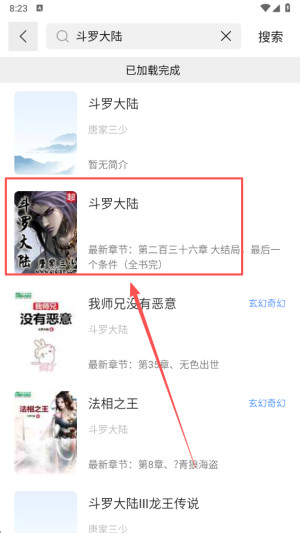 4、点击搜索之后就会列出一系列相关的小说资源了,选择其中一个;