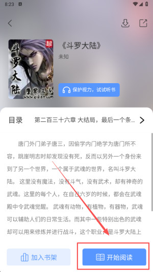 2、点击“开始阅读”选项,系统会迅速加载您选择的作品内容。