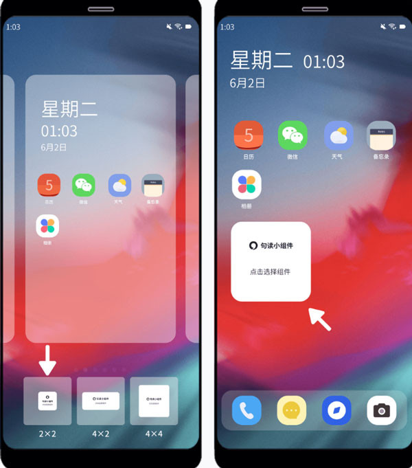 7、左右滑动,从候选列表中选出合适大小的组件添加到桌面