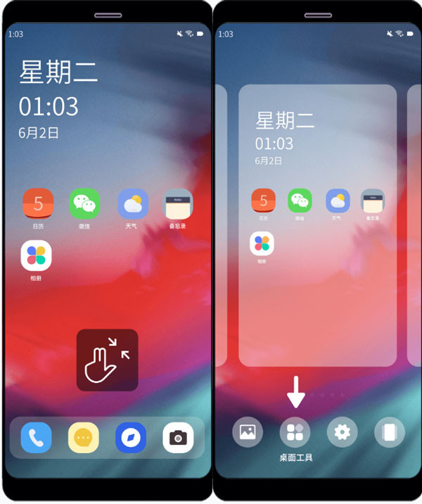 不同品牌手机名称可能略有差别,例如:窗口小工具插件桌面挂件添加工具,请根据实际情况选择。