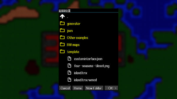 2.地图文件将以TMX格式保存,现有的TMX地图文件也可以导入编辑器进行二次编辑。