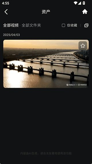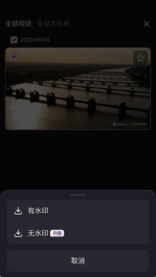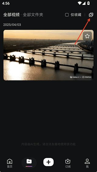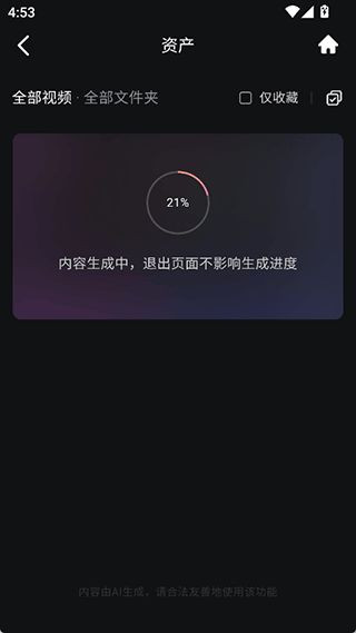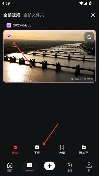 1、用户可以前往app的资产界面下查看到需要下载的已生成好的视频资源,然后点击右上角的勾选按钮。