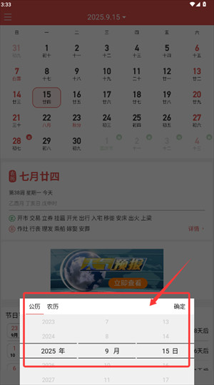1、启动日历应用,点选日期区域,在弹窗中设定目标年月日后确认。