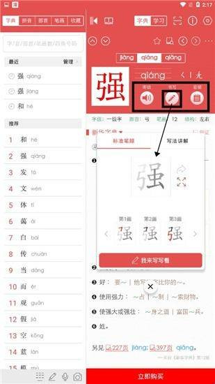 3、点击听说、书写、易错按钮会有小卡片详细讲解。