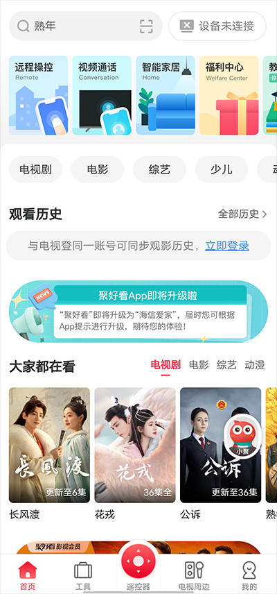 2、【精选工具】聚好看支持万能遥控器、家庭留言板、高清视频通话、照片投屏、视频投屏、音乐投屏、电视截图、传音入密、清除缓存、应用管理、家庭私有云、小聚在家等诸多个功能。