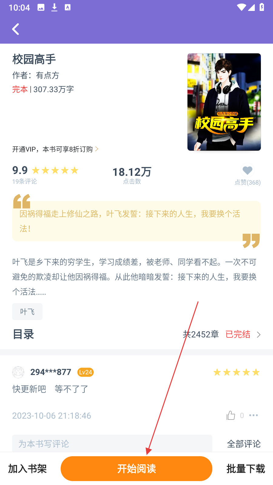 4、在详情页点击【开始阅读】即可开启阅读之旅。