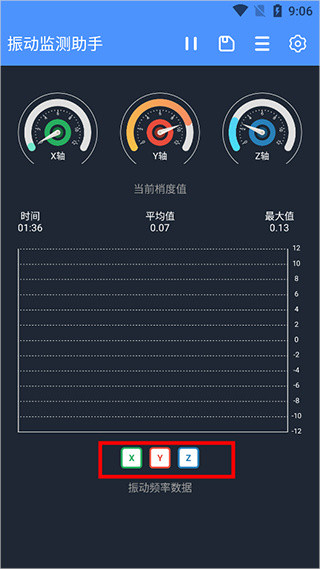 2、接着用户就可以看到xyz不同方向的震动数据线