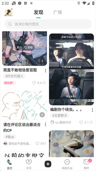 首页拥有【发现、广场】两大板块可查看其他人发布的内容。