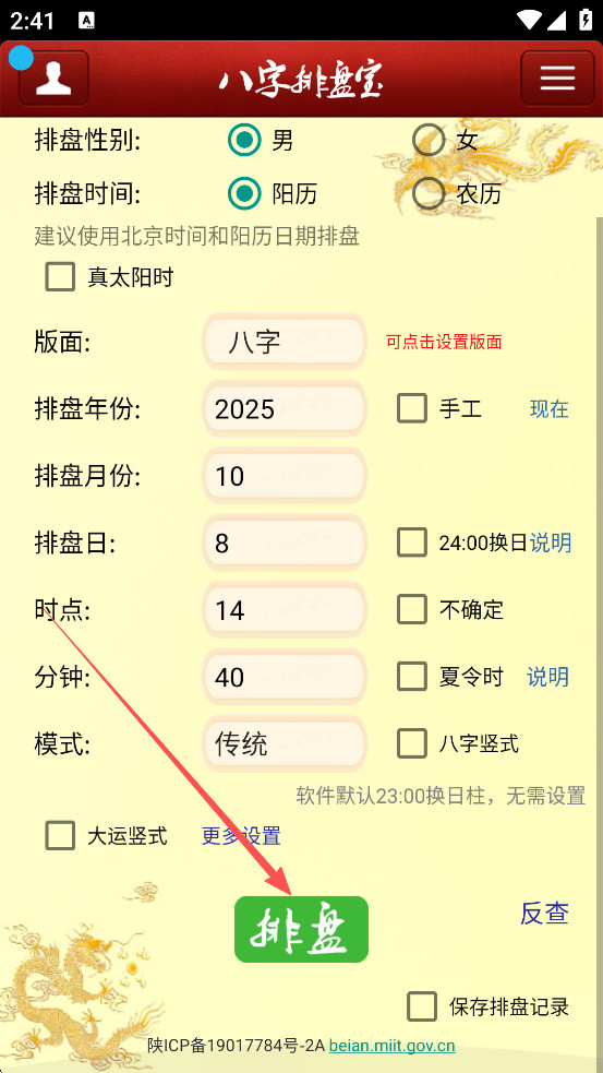 2、软件会根据你的个人信息为你排出个人的四柱八字和其他信息