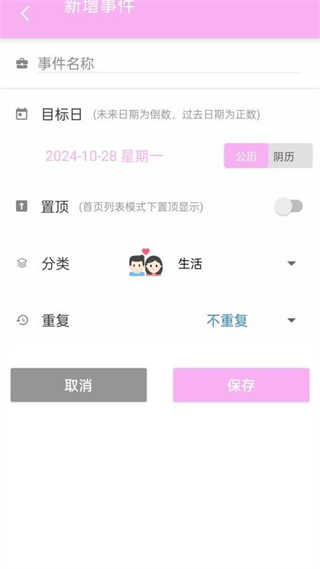 2、选择日期并填写事件名称,保存后即可开始倒计时。