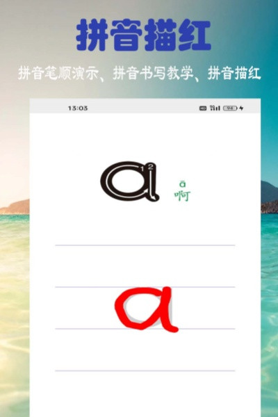 3、形象生动的卡通配图、标准的笔顺书写教学,宝宝不仅可以认拼音,还可以一笔一划地学写拼音。