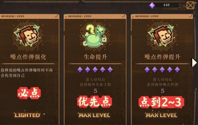2 技能树加点优先加点生命,商店的一些buff可以在不点的情况下完全打通,推荐先点后两个。