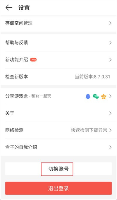 进入设置功能界面后,找到最下方的【切换账号】选项并点击