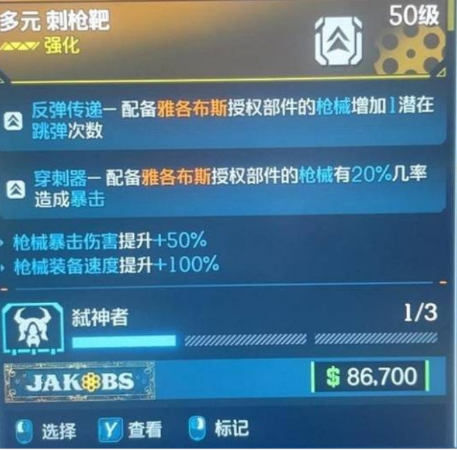 其次就是强化套件了。这一套刚需雅各布斯配件的增加潜在跳弹,不然弹几下就没了,稀有度倒无所谓,紫的也行。