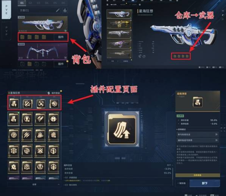 逆行者们获得插件后可通过仓库/背包选择武器,点击对应的按钮即可配置芯片。