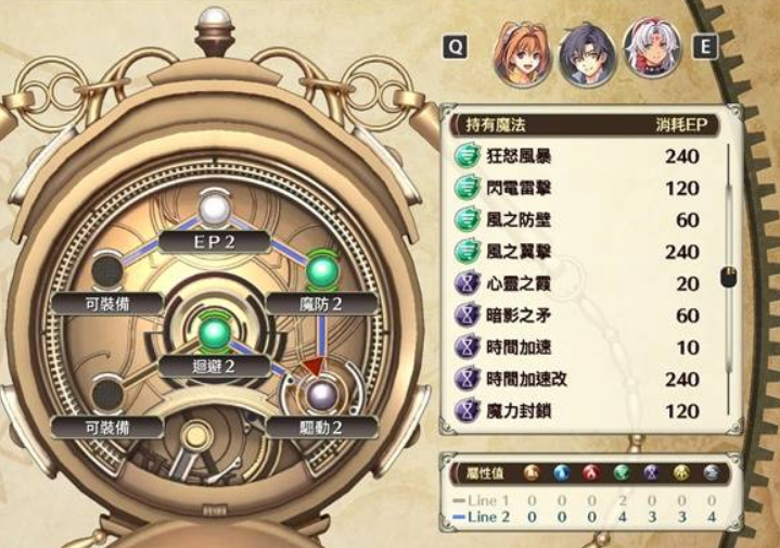中央风属性放回避2,另一个风属性格放魔防2,凑到风4