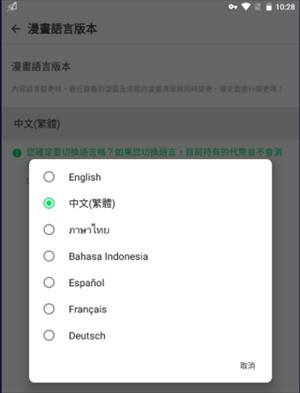 点击中文(繁体)选项后即可选择改变成其他语言,如英文、法语等