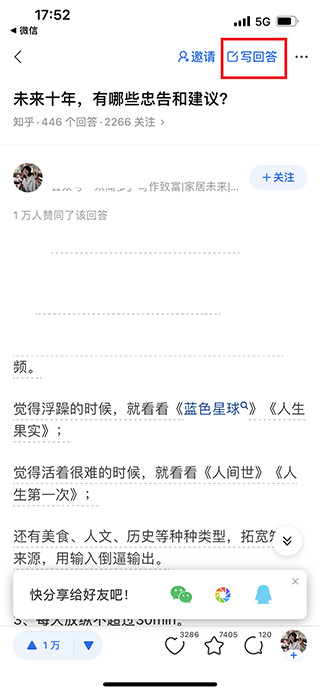 进入问题页面后,点击屏幕上方的“写回答”选项;