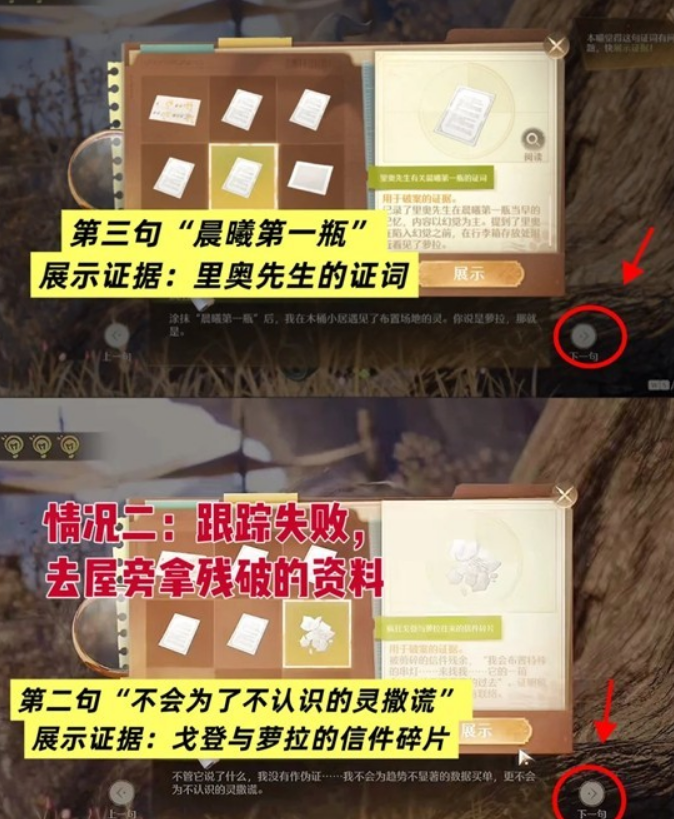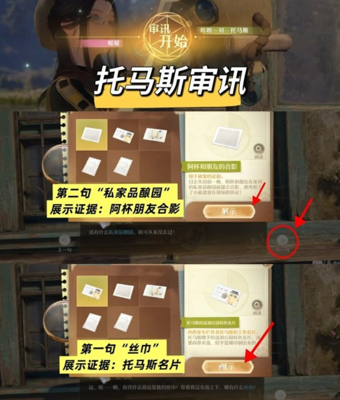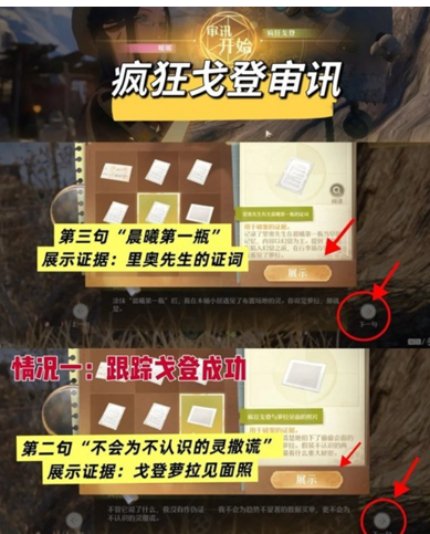 【审讯举证】注意右下角,可以调整【下一句】