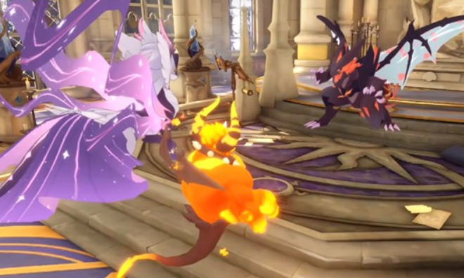 冥古龙在战斗中会使用蝙蝠技能进行基础物理攻击,该技能不仅具备常规伤害效果,还会召唤出多个辅助单位参与战斗。这些召唤物不仅能继续施加伤害,还带有吸血机制,能够恢复冥古龙的部分生命值。因此在对战过程中,若不及时清理这些帮手,玩家的精灵将面临持续消耗的压力,战斗节奏也会被逐步拖垮。