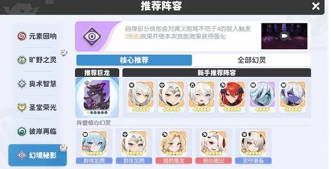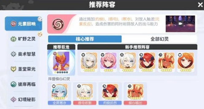在元素阵营中,爱神维纳斯能与元素反应机制产生联动,当队伍触发元素反应或敌方施加元素类减益时,她的技能效果将获得额外增益,因此她被视为补全元素队的关键拼图。前排仍可使用仲夏夜之梦·奥伯隆妮,输出位搭配炎魔·伊芙利特、齐格菲、魅夜之狩·芬里尔以及海神·波塞冬。跨阵营阵容中,以提尔锋为前排核心,搭配奥法领主·阿塔尼丝与爱神维纳斯,形成攻守兼备的体系,其他输出位可灵活选择尘世巨蟒·耶梦加得、万蛇之母·美杜莎等高星幻灵,提升整体输出与控制链完整性。