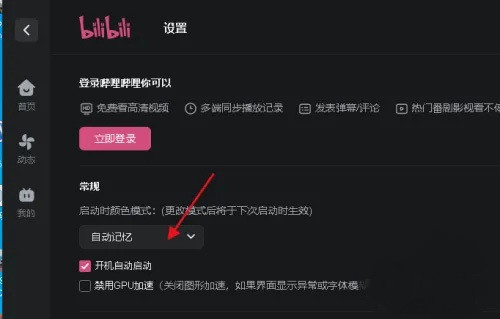 在打开的窗口界面中,找到"常规"一栏中的"启动时颜色模式",点击选项框的下拉按钮。