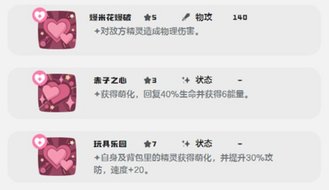 超级糖果是奇梦咪的核心输出技能之一,拥有高达130威力的物理伤害,在释放后还能使自身进入萌化状态。这一状态不仅能提升部分技能效果,还能在对战中干扰对手判断。配合其可爱的外表,往往能在心理层面给对手造成一定压力。该技能在日常刷图和PVE挑战中表现尤为亮眼,清怪效率高,是主力输出手段之一。
