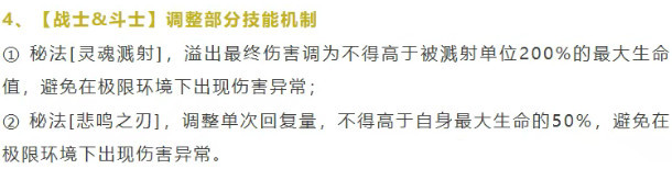 ①重点技能[命魂守护]终于是回调了,提升技能系数,就是不知道回调了多少,但肯定不如削弱之前的了。砍的伤害快的很,回调等的真久。
