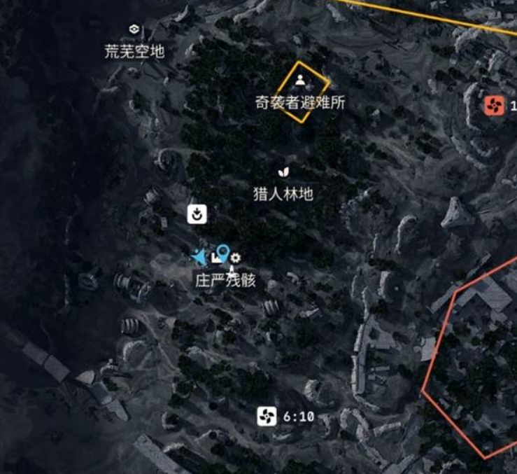 在荒芜空地,地图当前人物位置处的一个白色关节