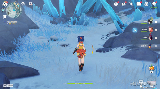 得知有几处被蓝色植物包围的古代坚冰,其中似乎隐藏着其他碎片,继续探寻雪山。