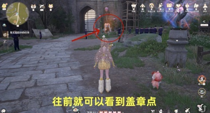 传送到 菲洛米亚女王行宫遗迹前 锚点,向后转,就可以看到盖章点;