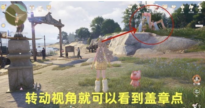 传送到 筑心王国边境哨所 锚点,转动视角,就可以看到盖章点;