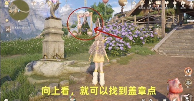 传送到绿野活动支援中心 锚点,抬头向上看,就可以看到盖章点;