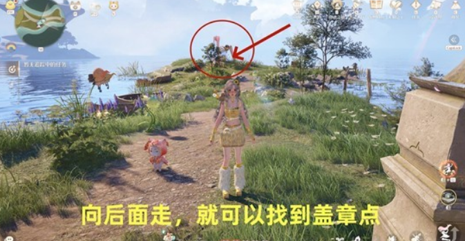 传送到 麦田旁 锚点,向右边转,跳到上一层,继续向前走,就可以找到盖章点;