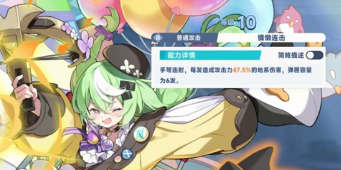 小禾的普攻共分为六段,每轮可连续射出六枚箭矢,攻击节奏流畅但不具备额外附加效果。在最后一发箭矢释放后会进入短暂的换弹动作,期间无法立即衔接下一轮普攻。这一机制使得她在主控输出时缺乏持续压制力和功能性,更多是作为基础伤害补充存在。虽然攻击手感尚可,但整体输出能力在同类主控角色中并不突出,因此不推荐将其作为核心输出位长期使用。