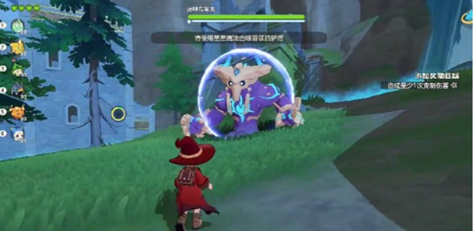 另一常用技能为原地拍击地面,产生范围震荡波。只要不贴近BOSS站立,基本不会受到伤害。该技能无追踪效果,释放范围固定,因此维持中距离作战是最佳选择。利用此间隙,可用星星魔法集中攻击其护盾部位,逐步削弱防御层。